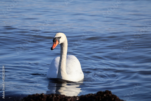mute swan, cygnet, white swan, bird, wildlife, nature, black sea, bulgaria, east europe, coastal, shoreline, sea, water, marin, travel, graceful, tranquil, peaceful, serene, poetic, minimalist, natural light, swimming, standing, preen, closeup, feather, beak, wild bird, animal, environment, seascape, photo