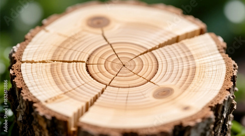 Close-up of natural wood rings with detailed grain patterns for sustainability concept art, perfect for gardening, timber branding, and eco-friendly product promotion use