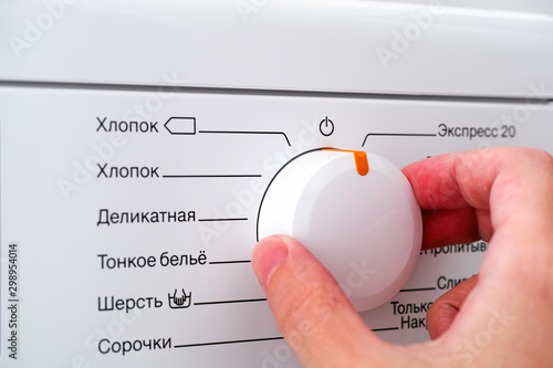 washing machine, hand, choosing, program, finger, laundry, push-button, knob, switch, choice, washing, buttons, domestic life, temperature, software, housework, chore, clothing, control, cotton, dial, indoor, machine part, modern, white, closeup, russian, text, word