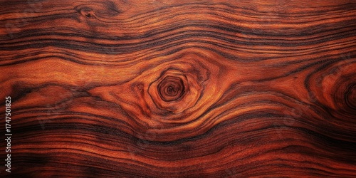 Close-up of polished wooden surface featuring rich reddish-brown smooth grain patterns and distinct knots evoking warmth and natural beauty