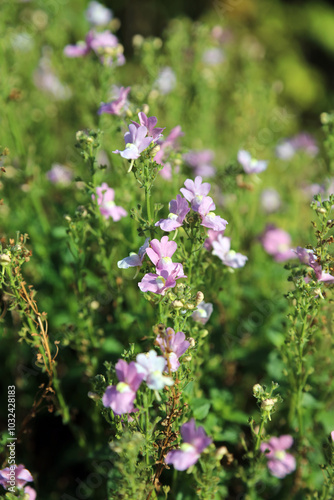 Closeup of purple Toadflax blooms, Suffolk England