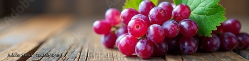 Close-up of ripe purple grapes on rustic wooden table, fruit, grapes, rustic