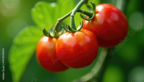 Close-up of ripe red tomatoes on the vine, fresh from the garden , antioxidants, vine