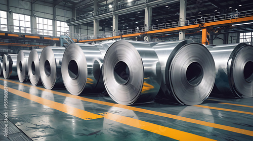 Closeup of Rolls of Sheet Metal in a Factory, Rolled Steel in a Production Plant setup, steel Industrial Manufacturing Concept,