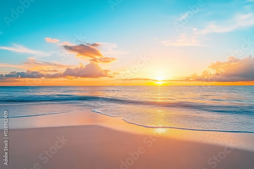 Closeup of sand on beach and blue summer sky. Panoramic beach landscape