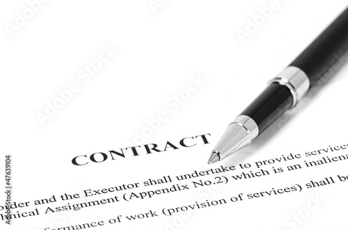 Close-up of silver pen on contract.