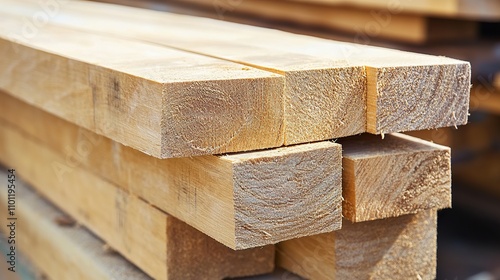 Close-up of Stacked Wooden Beams: Texture, Construction Material, and Woodworking Industry