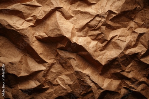 Close-up of textured, crumpled brown paper; shadows and highlights create depth