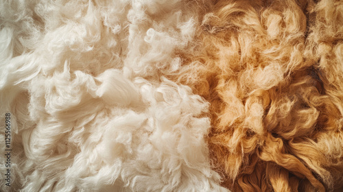 Close-up of textured wool fibers in white and brown tones