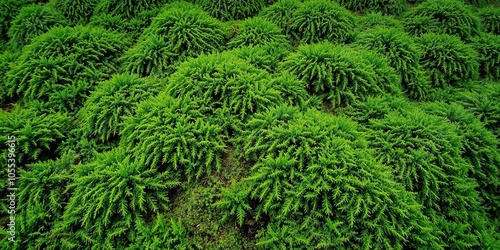Closeup of vibrant green moss in a dense forest setting, natural, greenery