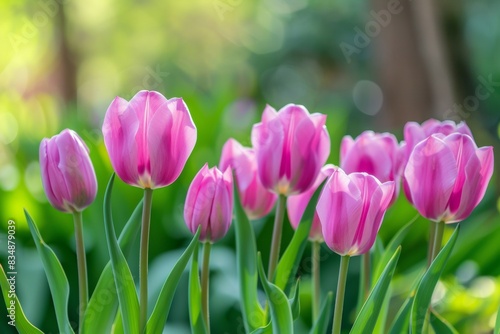 pink, tulip, closeup, vibrant, full bloom, flower, flower petals, green, spring, floral, garden, gardening, nature, bloom, elegant, fresh, delicate, outdoors, sunny, lush, bouquet, stem, natural light, romance, flora, event, planning, decoration, horticulture, botany, landscaping, colours, colourful, bright, beautiful, ornamental, blooming, seasonal, park, botanical, plant, flowering, greenery, freshness