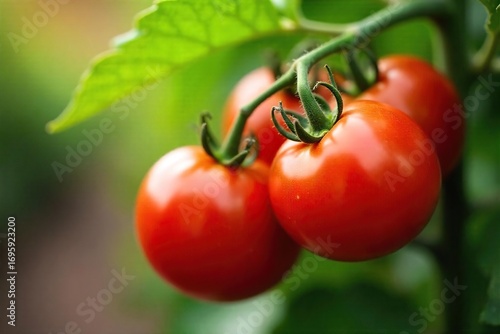 Close-up of vibrant red ripe tomatoes on the vine, freshly picked from the source Juicy, plump, and perfect for salads, sauces, or snacking A healthy and delicious summer harvest , ingredient, sauce