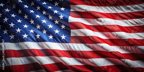 Closeup of Waving American Flag, red, white, and blue, stars and stripes, patriotism, independence