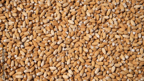 Close-Up of Wheat Kernels – Organic Grain Texture and Harvest Concept