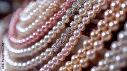 Close-up of White, Pink, and Silver Pearl Necklaces