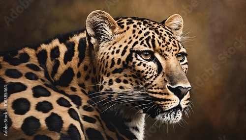 Close-up portrait of a majestic leopard, showcasing its striking rosette-patterned fur, piercing golden eyes, and powerful, muscular build.