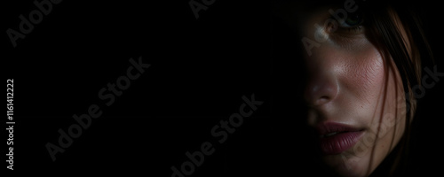 close-up portrait of a model with text space background