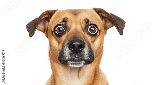 Closeup Portrait of a Scared Brown Dog with Wide Eyes Against a White Background