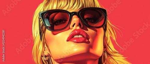 blond, woman, red lips, sunglasses, fashion, beauty, portrait, closeup, stylish, vibrant, make-up, lipstick, eyewear, glamour, model, female, face, skin, hair, blonde hair, long hair, looking, sensual, seductive, confident, elegant, retro, vintage, 70s, 80s, artistic, illustration, digital artwork, painting, graphic, design, studio shot, isolated, background, bright, bold, colours, cosmetic, attractive, beautiful, chic, cool, trendy