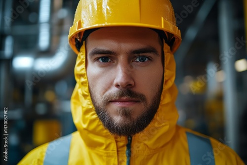 industrial, men at work, safety, protection, yellow, equipment, portrait, man, face, serious, sharpened, protective, helmet, hood, clothing, detail, factory, environment, person, male, confident, industry, manufacturing, construction, focused, seriousness, professional, work, hard-working, tough, determined, commitment, detail, steel, pipe, machinery