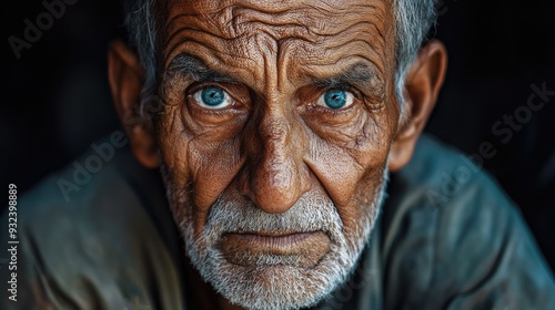 old, man, face, portrait, wrinkle, eye, blue, closeup, senior, beard, white, grey, hair, skin, expression, emotion, intense, look, stare, thoughtful, deep, wisdom, life, ageing, elderly, human, india, pakistan, asian, culture, heritage, close, detail, background, dark, shadow, light, contrast, sharpness, sharpened, depth, field, photo, art, photograph