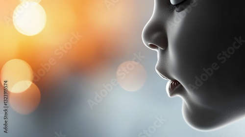 Close-up Profile of a Realistic Doll Face Capturing Emotions and Details Against a Soft Background with Orbs of Light