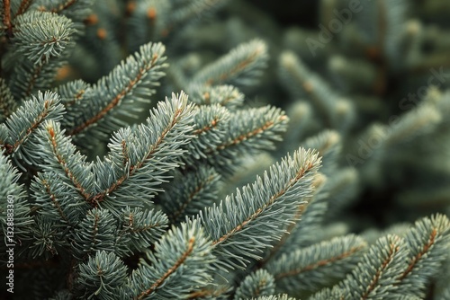 Close-up shot of a pine tree's green needles and branches