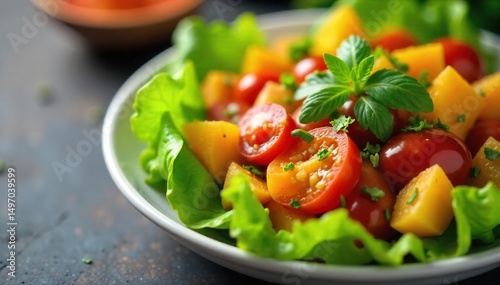 Close-up shot of a vibrant, colorful salad with fresh vegetables and a delicious dressing, ready to be enjoyed Perfect for healthy eating, diet, and lifestyle concepts , colorful, nutrition, spring