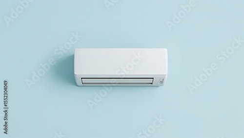 Close-up shot of a white AC mounted on a light blue wall,office,computer,design
