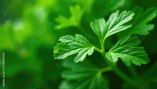 Close-up shot of parsley, showing leaf veins & shapes, healthy, detail