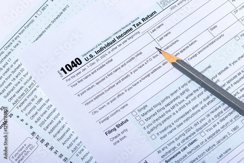 Close-up USA individual income tax return form 1040. Tax payment and filing concept