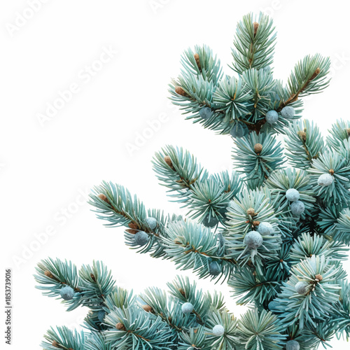 Close-up Vector of a Blue Spruce Tree Branch with Pine Cones
