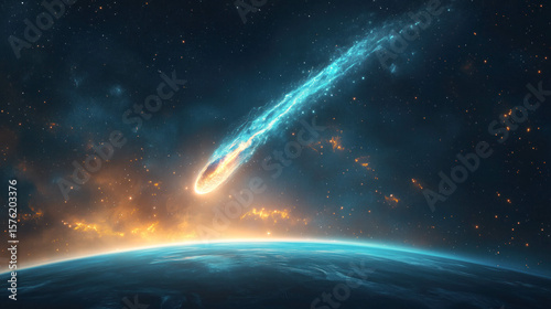 meteorite, light, space, sky, astronomy, universe, meteor, night, galaxy, glowing, star, comet, bright, celestial, cosmic, cosmos, trail, streak, nature, atmosphere, science, asteroid, fireball, dark, fantasy, fire, tail, burning, motion, background, explosion, horizon, impact, orbit, planet, shiny, speed, energy, abstract, black, blue, phenomena, dynamic, earth, flare, heat, nebula, astrology, falling