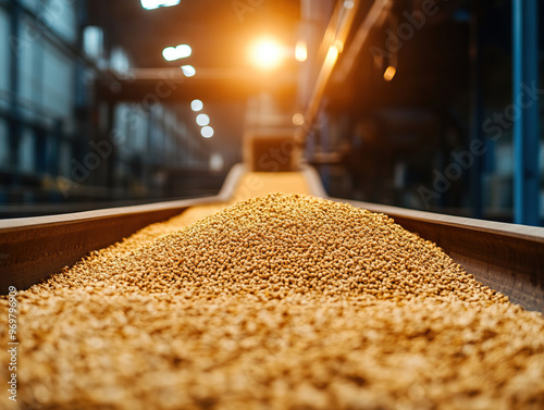 grain, conveyer, factory, close, view, pile, belt, illuminated, soft, industrial, production, harvest, utility, inspection, structure, automation, control, equipment, workflow, design, agriculture, engineering, area, texture, insight, material, hopper, facility, movement, mechanic, system, technology, observation, manufacture, commerce, overhead, transfer, configuration, safety, workshop, orientation, storage, environment, platform, discharge, handle, transport, resource