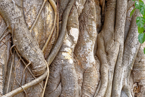 Close-up view of a magnificent old fig tree in Ayutthaya