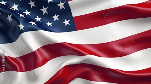 Close-up view of an American flag waving gracefully in the wind, showcasing its vibrant colors and detailed patterns, perfect for patriotic themes and representation.