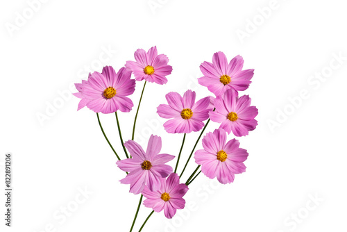 Close-up view of purple cosmos flowers isolated on transparent background png file.