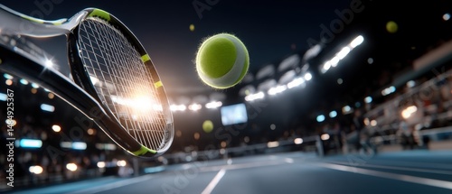 tennis, serve, racquet, ball, closeup, court, player, light, tournament, stadium, fly, match, competition, spin, pro, accuracy, game, fast, night, intensity, spotlight, arena, athlete, sport, challenge, reaction, energy, power, equipment, rally, moment, motion, bounce, aim, shot, sharpened, performance, reflex, dynamic, skill, professional, event, view, action, fastball, light, precision, hit