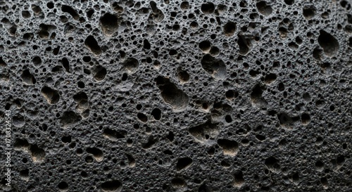 Close-Up View of Textured Volcanic Rock with Natural Pores and Holes in Black and Gray Shades