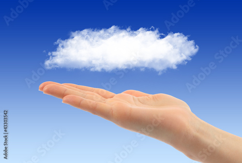 Cloud computing concept with woman hand