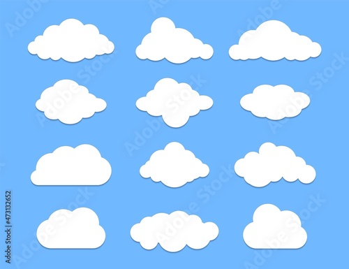 Cloud graphic shapes. Data design element. Vector cloudy bubble set isolated on blue background