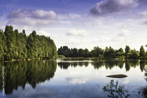 blue, calmness, cloud, flow, forest, green, landscape, nature, peaceful, reflections, river, scenery, serenity, sky, still, stone, summer, tree, warmth, water, wood