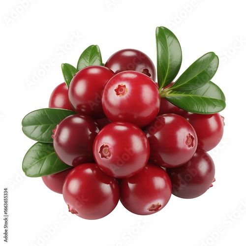 Cluster of Fresh Cranberries with Green Leaves lingonberries