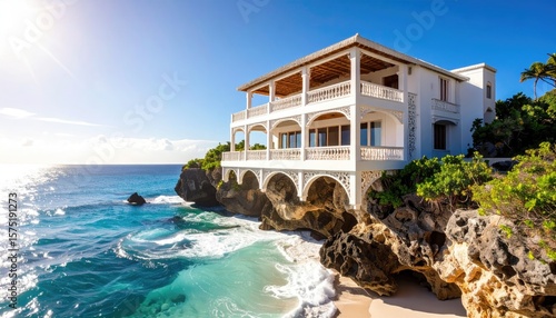 house, ocean, beach, cliff, wave, vacation, scenery, travel, paradise, luxury, villa, waterfront, stunning, beautiful, tropical, caribbean, home, architecture, coast, sea, resort, nature, building, summer, amazing