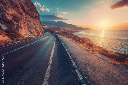 coast, ocean, road, highway, sunset, evening, beach, shoreline, landscape, scenic view, nobody, empty space, natural beauty