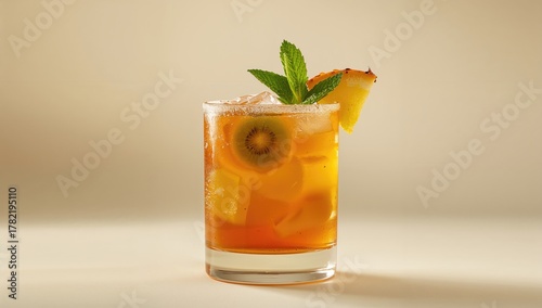 Cocktail drink served in a glass, tropical flavors and vibrant colors, refreshing summer beverage