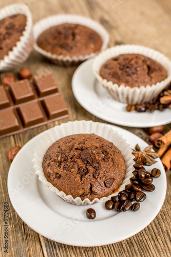 muffin, chocolate, dessert, cocoa, food, hazelnut, hot drink, cupcake, sweet, fresh, snack, cake, breakfast, delicious, homemade, baked, closeup, tasty, bakery, epicure, treat, bread, sugar, nourishment, brown, pastry, cooking, eat, table, diet, cookie, bake, wood, paper, walnut