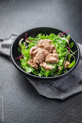 cod liver salad fresh seafood healthy meal diet snack on the table copy space food background rustic