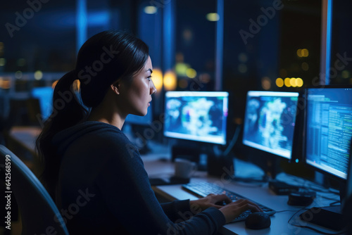 programmer, woman, diversity, computer, coding, laptop, desk, night, work, technology, developer, female, software, late, night time, office, workstation, keyboard, monitor, concentration, occupation, job, determination, dark, workspace, screen, typing, innovation, progress, multitask, digital, skill, dedication