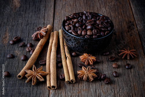 Coffee beans with cinnamon A mixture of popular drinks.